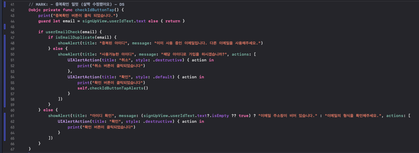 재사용성을 위해 얼럿 생성 관련 메서드를 따로 뺏음