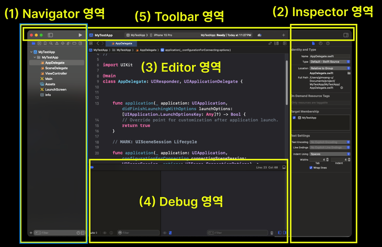 - swift 파일, 리소스(이미지, 컬러 등) 파일, 연결된 라이브러리 등을 확인 가능